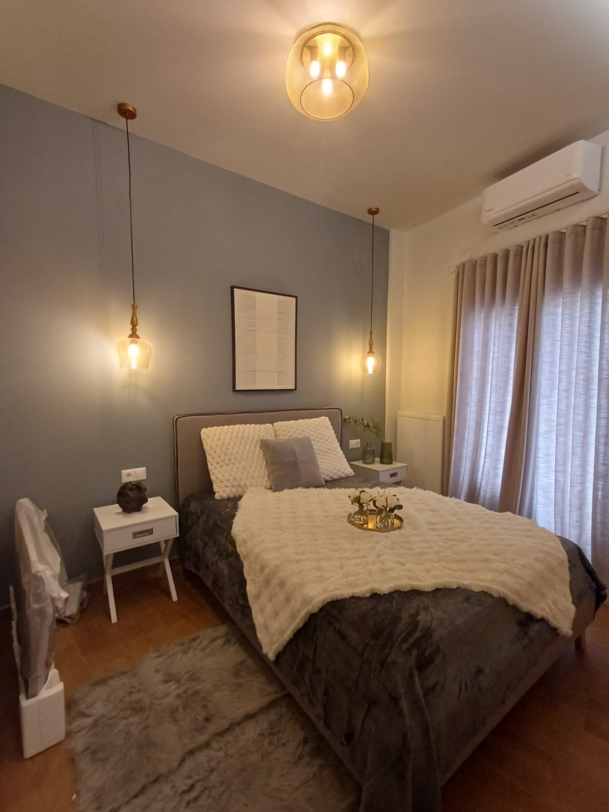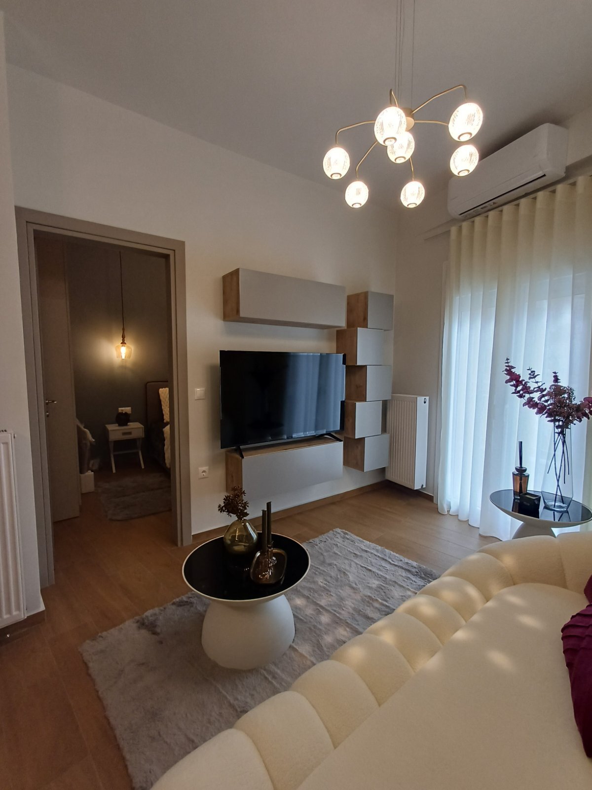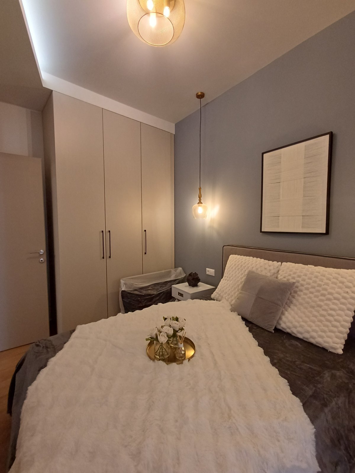 Апартаментът има слънчево изложение. С Имотът предлага красива гледка към града. Имотът разполага със следните екстри: мебели, климатик, cградата има асансьор, отопление.
